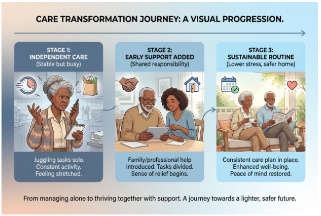 Many families hesitate to seek help because they worry about disrupting routines or losing control. In reality, quality caregiver support strengthens the home environment.